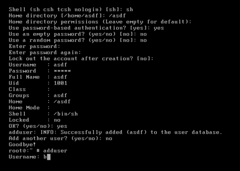 輸入新用戶的名字例如:b。