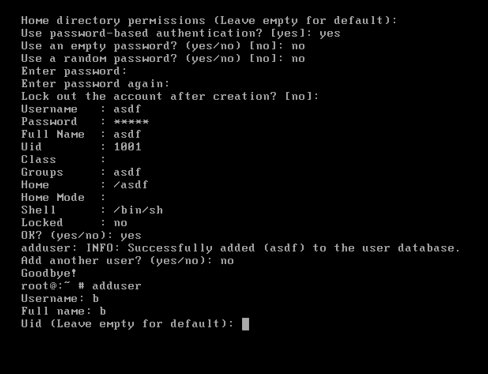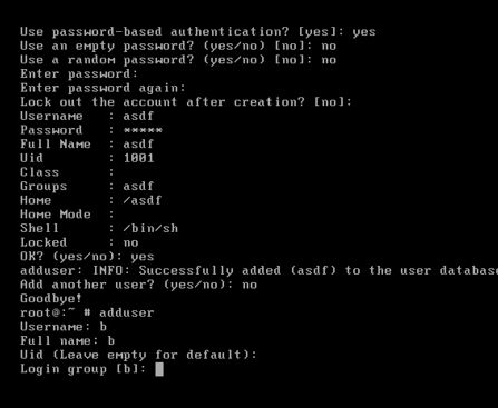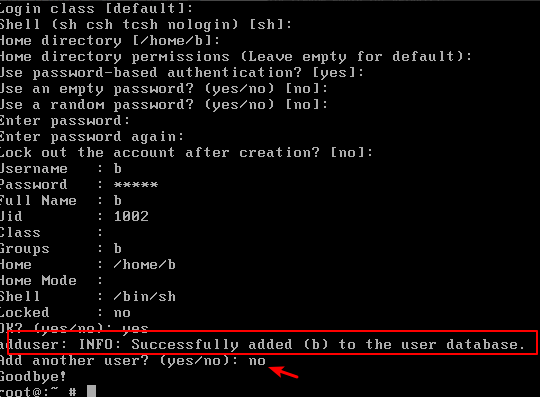 在圖一的提示這里輸入密碼,再次輸入密碼,然后輸入ok,看到成功的英文就增加成功了。接著會提示是否還添加用戶,輸入no就可以了。