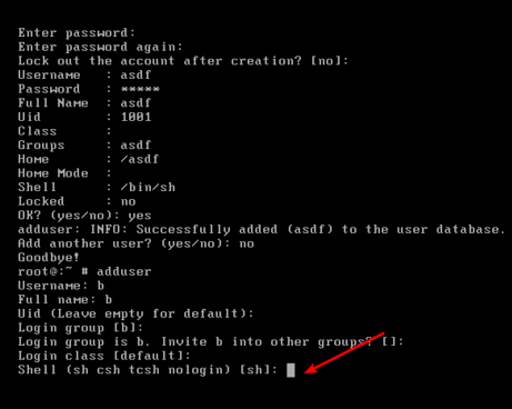 電腦會詢問使用那個shell直接回車即可,到password就是設置密碼。一樣選擇回車。