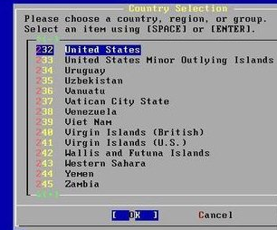然后,用上下左右鍵跳到我們偉大的祖國——中國,即為序號為45的china。回車吧!