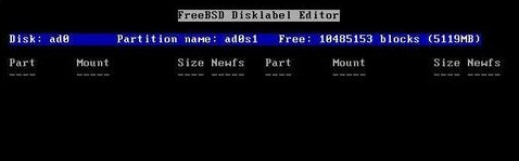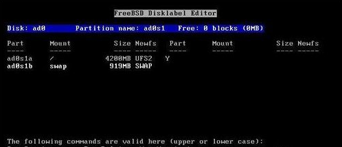 進行過linux分區(qū)的童鞋可能覺得有一小點似曾相識。但是這兩種系統(tǒng)的分區(qū)有個最大的區(qū)別——freebsd是讓你劃分一塊專用區(qū)稱為Slice,然后再在里面分區(qū)??梢园凑漳J分的Slice來分。在Slice空白區(qū)上回車即可創(chuàng)建新分區(qū),按Q結(jié)束全部操作,按U取消全部操作。
