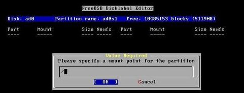然后系統(tǒng)會提示你如何安裝啟動程序,需要多系統(tǒng)的選擇bootmgr,不需要的選擇standrid。然后系統(tǒng)會讓你分FileSystem和swap(freebsd的FileSystem隨便分(這里的單位是兆),不過FileSystem的本身是系統(tǒng)根目錄,所以盤符要為/。swap就是虛擬內(nèi)存(地球人都知道),和linux一樣,分成虛擬內(nèi)存的1.5倍最好。有心的童鞋也可以應建議分/home),然后按Q完全結(jié)束分區(qū)。