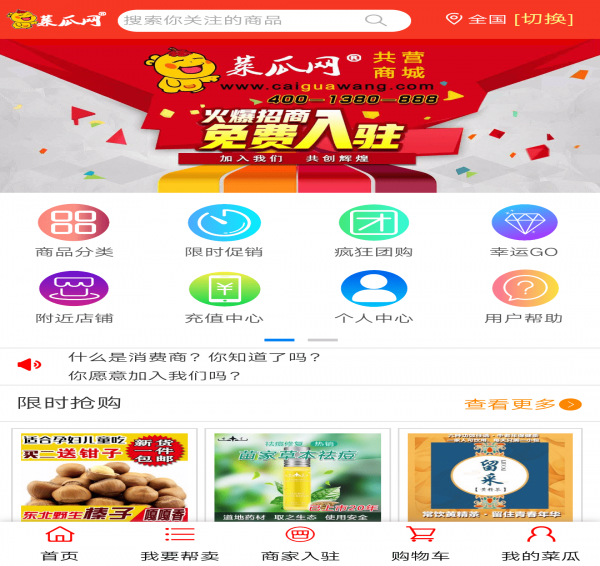 菜瓜網(wǎng)共享商城是一家一站式共享經(jīng)濟模式共享商城,菜瓜網(wǎng)共享商城結(jié)合傳統(tǒng)企業(yè)完美的o2o移動電商解決方案;將您的豐富人脈迅速轉(zhuǎn)化為商品流量,使手機站品牌曝光度與商品成交量相互促進;加入菜瓜網(wǎng)共享商城,一鍵網(wǎng)上開店,傳統(tǒng)企業(yè)實現(xiàn)線下線上整合,助力個人互聯(lián)網(wǎng)創(chuàng)業(yè)夢想成真!