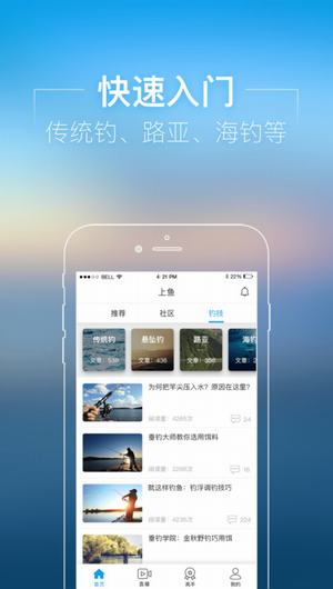 視頻點(diǎn)播:覆蓋傳統(tǒng)釣、懸墜釣、路亞、海釣、漁具、賽事、釣行等多種多樣的視頻內(nèi)容,在觀看視頻中學(xué)習(xí)并提高釣技,快速入門。