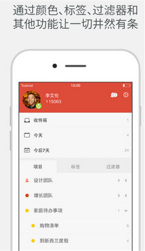 Todoist App可以通過 iPhone、iPad、桌面、瀏覽器、Gmail 及其他多達 13 個平臺上同時使用,并能在您的所有設(shè)備上進行同步,管理事物實用快捷。Todoist App應(yīng)用本身是免費的,但是有高級版的內(nèi)購項目。