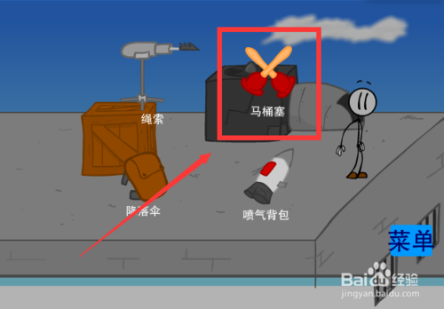 主角出現(xiàn)在房頂。選擇道具馬桶賽