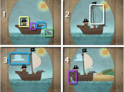 大炮的使用方法,調(diào)整大炮的方向,先點(diǎn)椰子裝好炮彈,點(diǎn)大炮點(diǎn)火 ,滅掉三只可愛(ài)的小鯊鯊。海盜說(shuō)船沒(méi)帆,咱是神筆馬良,掏出木炭畫(huà)個(gè)帆出來(lái);萬(wàn)事俱備只欠東風(fēng),咱就貼上紙?jiān)平钖|風(fēng)。