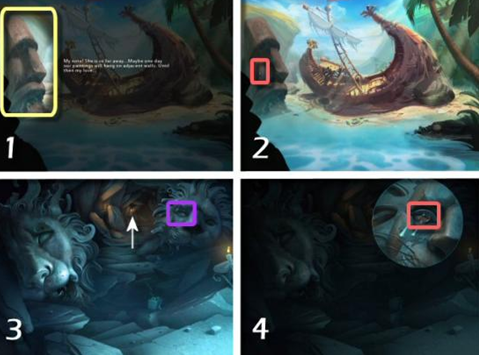 本作采用了趣味十足的冒險(xiǎn)解謎原理,玩家可以自由穿梭在各個(gè)場(chǎng)景之間,或進(jìn)入壁畫(huà)中完成角色間的互動(dòng)謎題。游戲加大了物品還原和使用環(huán)節(jié)的比重,并將新穎的MINI游戲巧妙融入,關(guān)卡謎題也設(shè)計(jì)的更為合理,重點(diǎn)考驗(yàn)玩家的邏輯思維和推理能力。