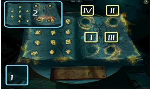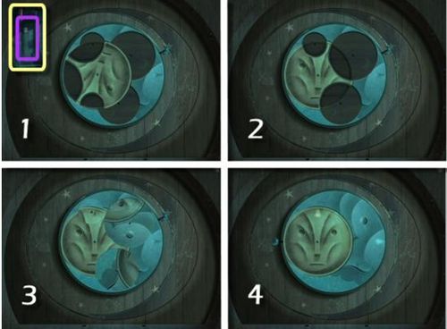 30、之后一路狂奔,重新進(jìn)入幽靜的小鎮(zhèn),依然是向左走亦如上次。拾階而上來(lái)到塔的頂端。魔法卷軸的幻影與實(shí)物在我的手中重疊。又是大轉(zhuǎn)盤(pán)……,不知道為什么謎2的轉(zhuǎn)盤(pán)特別多。轉(zhuǎn)發(fā)就是點(diǎn)擊那些藍(lán)色的小點(diǎn),圓盤(pán)當(dāng)中的符號(hào)和外面的符號(hào)對(duì)應(yīng)上時(shí)外面的符號(hào)就會(huì)亮起,外面的符號(hào)全亮起,并且形成的圖案與右側(cè)的印記一樣時(shí)就通過(guò)了。貌似每次的初始位置是否一致。無(wú)論初始如何,要點(diǎn)是綠色的那個(gè)點(diǎn)是只旋轉(zhuǎn)單片調(diào)整角度的,只要把握這一點(diǎn),就可以隨意調(diào)整位置和角度了。不過(guò)我很幸運(yùn),做攻略這次開(kāi)局就是3個(gè)亮的,總共轉(zhuǎn)了十多下就搞定了,第一次通關(guān)的時(shí)候倒是摸索了一會(huì)轉(zhuǎn)了很久才過(guò)。
