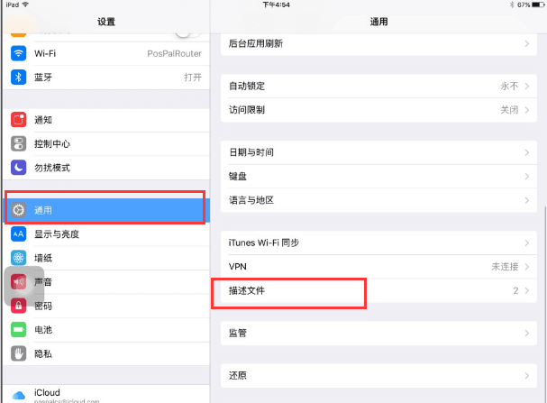點(diǎn)擊系統(tǒng)設(shè)置-通用-描述文件