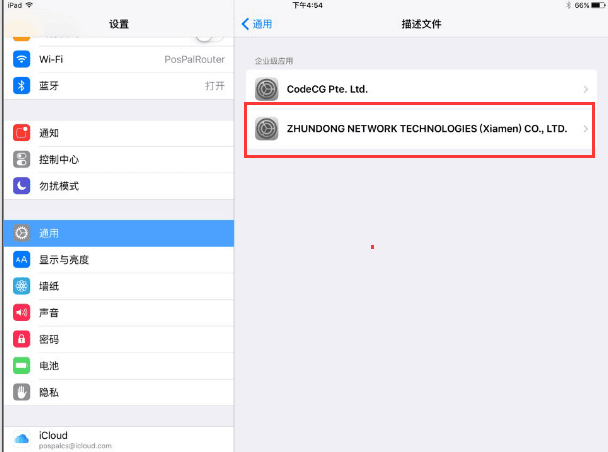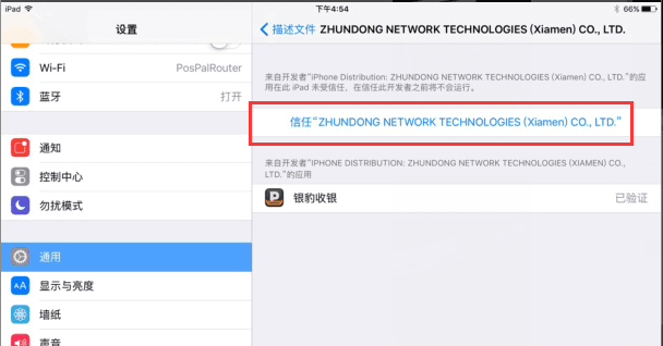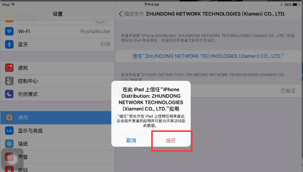 3、如下圖點(diǎn)擊信任應(yīng)用程序配置文件‘ZHUNDONGNETWORKTECHNOLOGIES(xiamen)CO.,LTD.’