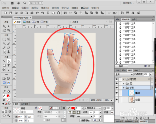 如何用fireworks cs6的鋼筆工具摳圖選中右側(cè)工具欄中的“鋼筆”工具