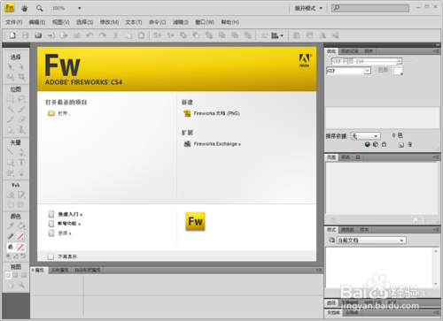 首先我們打開Fireworks軟件后彈出如下圖所示頁面。