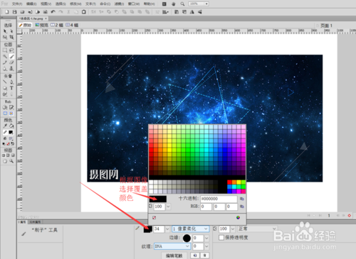 選中“刷子”工具,在最下面的屬性面板中調(diào)整刷子的像素大小,和顏色(選擇接近圖像的顏色),如果圖片顏色過淺,那么將像素大小調(diào)小,圖片放大一點(diǎn)點(diǎn)的覆蓋即可。(只是這樣有點(diǎn)麻煩~ o(* ̄▽ ̄*)o)