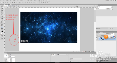 首先,在位圖欄中選中“橡皮圖章”工具,在圖像中最接近水印的位置選中該點(diǎn)的圖片像素,然后鼠標(biāo)會(huì)變成一個(gè)藍(lán)色的圓圈和一個(gè)+,用藍(lán)色圓圈像橡皮一樣拖動(dòng)去除水印即可。(這種方式好用是好用,但是不容易掌握哦)