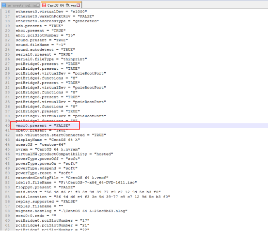 打開該文件搜索vmci0.present 講其值改為FALSE 就OK了.如圖示
