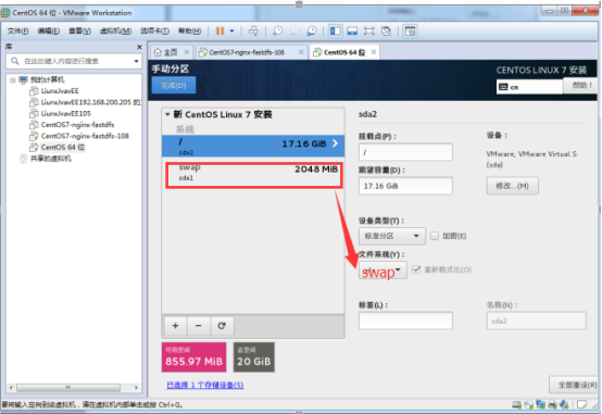 上面內(nèi)存填17.16GB,這邊得看自己設(shè)置的虛擬機(jī)內(nèi)存。我這里總空間比參考設(shè)置分區(qū)的圖例少0.48GB容量,所以就直接這樣設(shè)置了。