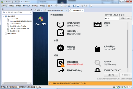 我們先來看一哈安裝源,安裝源一般是自動檢測的。在我們選擇鏡像文件的時候就已經(jīng)確定的安裝源,自動檢測一會就沒有上述的警告了,這個地方需要改的是軟件選擇。
