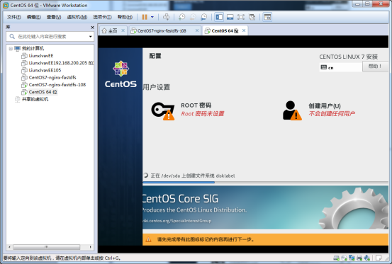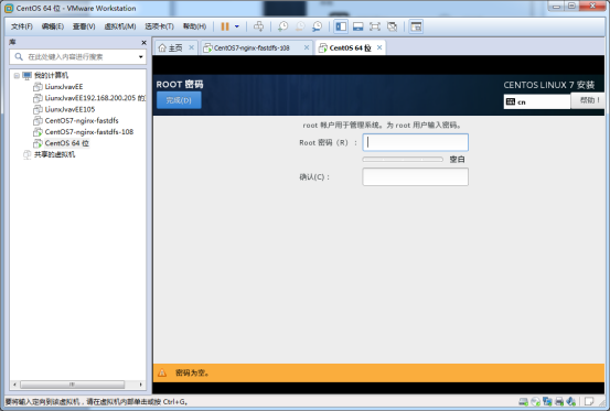 這里centos7設(shè)置密碼需要數(shù)字、字母加特殊符號,它才不會報警告!點擊完成就設(shè)置好root用戶密碼了。