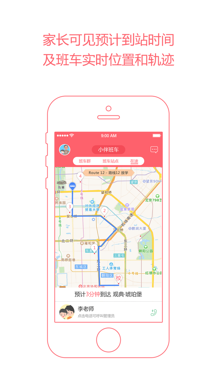 極簡(jiǎn)設(shè)置與操作: 通過校車跟車?yán)蠋煹氖謾C(jī)精準(zhǔn)定位,無需加裝額外硬件。提供校車站點(diǎn)信息后,下載小伴手機(jī)APP,3分鐘完成注冊(cè),即可使用。
