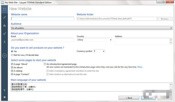 改進了網(wǎng)站創(chuàng)建向導,其中包含新的選項以及可以從基本模板和空白主題快速啟動的選項