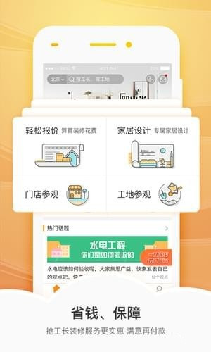 用戶可以使用新浪搶工長app直接管理工地測量、建材下單、施工、智能工地監(jiān)控、驗(yàn)收等裝修事宜。