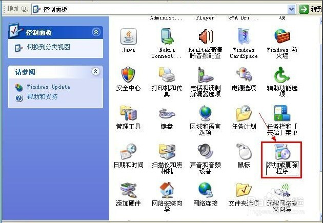 在“控制面板”窗口,單擊“添加或刪除程序”圖標(biāo)