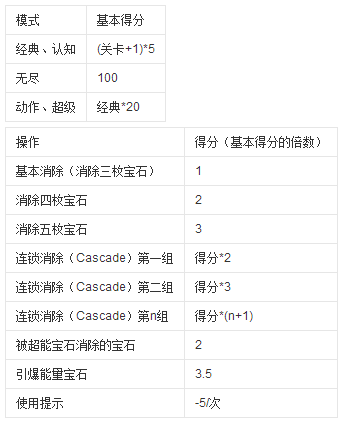 1. 經(jīng)典(Classic)模式: [1] 該模式?jīng)]有時(shí)間限制,玩家將不停地消除寶石直至無寶石可消時(shí)游戲結(jié)束。可以使用提示,但是會(huì)扣分。
