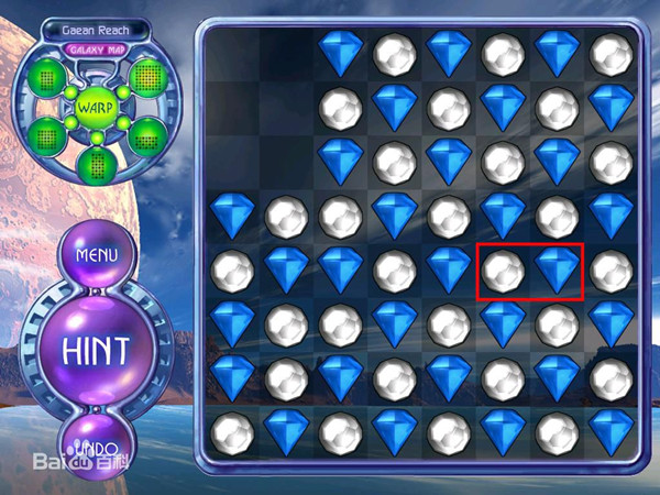 玩家選擇兩個(gè)寶石進(jìn)行位置互換,互換后如果橫排或豎排的有3個(gè)或3個(gè)以上的相同寶石,則消去這幾個(gè)相同寶石,如果互換后沒有可以消去的寶石,則選中的兩個(gè)寶石換回原來的位置。消去后的空格由上面的寶石掉下來補(bǔ)齊。