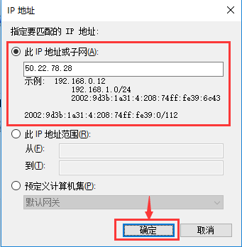 在“此IP地址或子網(wǎng)”處輸入以下IP(一次一個(gè)):
