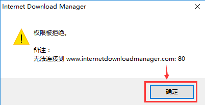 現(xiàn)在IDM已經(jīng)無(wú)法與它的驗(yàn)證激活服務(wù)器取得通信了,我們要實(shí)現(xiàn)的就是這個(gè)效果,直接點(diǎn)擊“確定”,