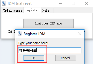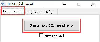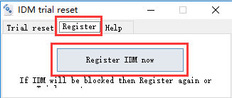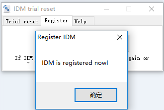 除此之外,切換至IDM trial reset的“Register”選項(xiàng)卡,這里可以注冊(cè)激活I(lǐng)DM,如下圖所示,
