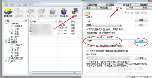 點(diǎn)擊選項(xiàng),在菜單中選擇保存至,在紅圈內(nèi)點(diǎn)擊瀏覽器選擇下載的保存目錄即可。這樣子下載的文件就會(huì)保存在自動(dòng)保存在自己設(shè)定的目錄內(nèi)。