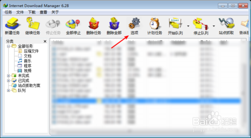 Internet Download Manager(IDM)下載目錄修改打開(kāi)下載軟件,點(diǎn)擊這個(gè)【選項(xiàng)】。