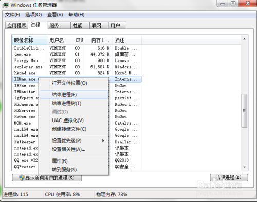 打開(kāi)任務(wù)管理器,結(jié)束IDM所有進(jìn)程和后臺(tái)程序,一定要將所有IDM的程序進(jìn)程結(jié)束