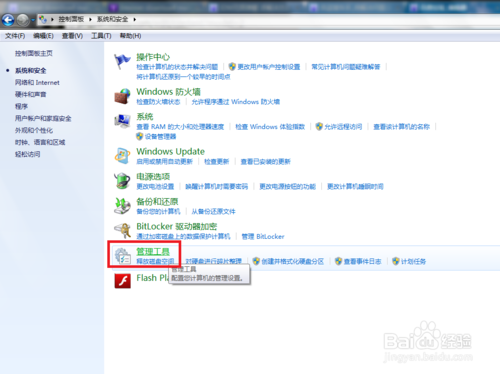 點(diǎn)擊開(kāi)始菜單-控制面板-系統(tǒng)安全-管理工具