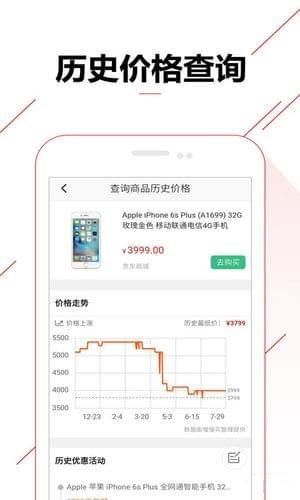 比價購物助手app展示商品歷史價格曲線,一鍵查詢商品最低價優(yōu)惠特價購買,識別虛假打折促銷。