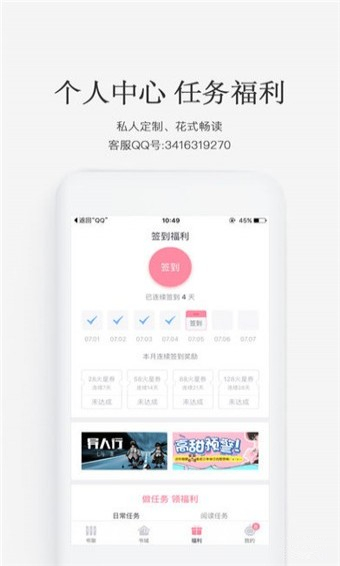 【簽到有獎(jiǎng),免費(fèi)看書(shū)】獎(jiǎng)品更加豐富的連續(xù)簽到獎(jiǎng)勵(lì),只要堅(jiān)持,看書(shū)不花錢(qián)。