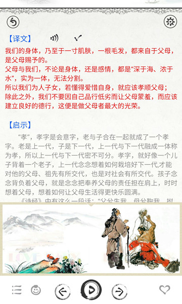 7、背景音樂為國學(xué)古典音樂,貼切主題,聽國學(xué)時(shí)感覺美妙無比。