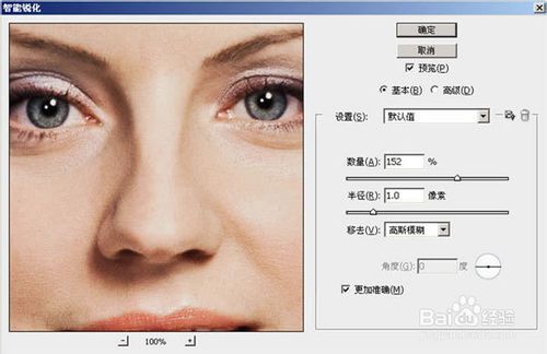 拼合圖像,使用濾鏡-銳化-智能銳化,進(jìn)一步提高皮膚質(zhì)感。