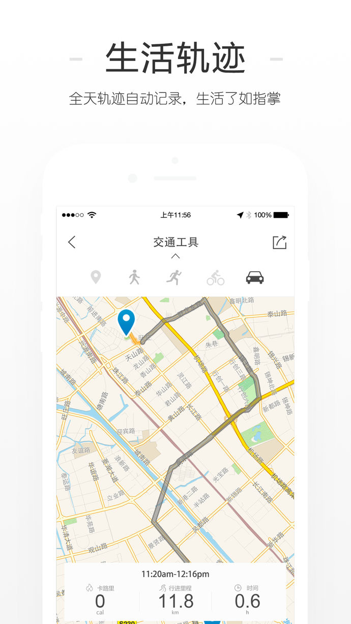 3、存儲生活:自動記錄每天的走過的軌跡,去了哪里,用了多久,走了多少步,多遠(yuǎn),消耗了多少卡路里,一一自動記錄。