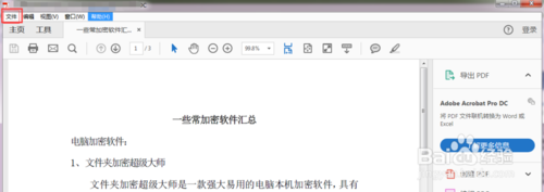 2、在右邊的閃電加密區(qū),打開這個加密文件,如果需要將這個加密文件導出U盤,卻又不想解密,可以在打開這個文件,然后單擊文檔上的【文件】,選擇另存為。然后選擇要導出的位置。