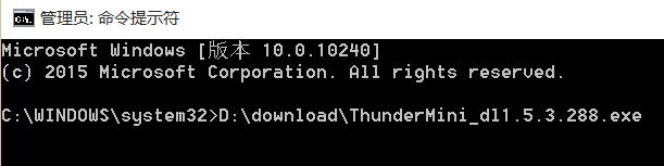 win + s,輸入cmd,在命令提示符上右擊,選擇以管理員身份運(yùn)行,輸入程序地址,如D:downloadThunderMini_dl1.5.3.288.exe,回車,這樣就出來了程序安裝頁面,之后就可以就行正常的安裝步驟了,