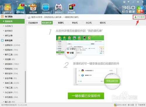 在軟件管家界面右上角點擊【登陸】按鈕,輸入360賬戶和密碼后登陸,如圖所示: