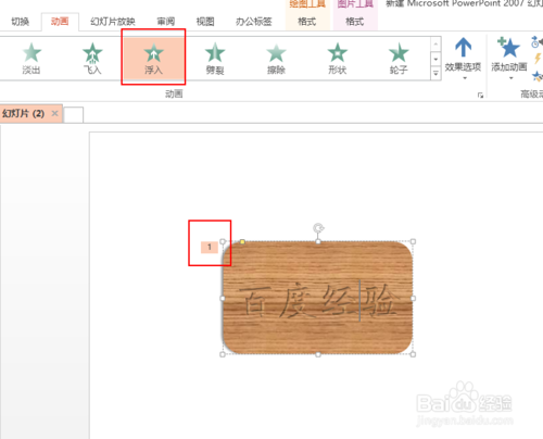 2、然后選擇一種動畫效果,發(fā)現(xiàn)此對象出現(xiàn)1,說明插入了一種動畫效果。