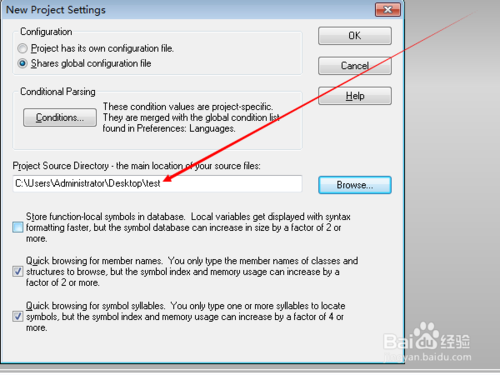 3.點擊[Browse],選擇源文件的路徑,即你存儲代碼的路徑;然后點擊[OK];