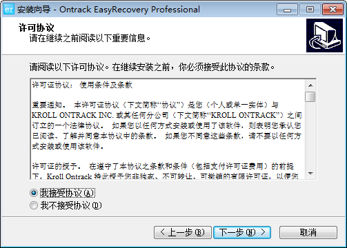 1.雙擊EasyRecovery安裝包,啟動(dòng)安裝向?qū)ч_始安裝,單擊“下一步”繼續(xù).