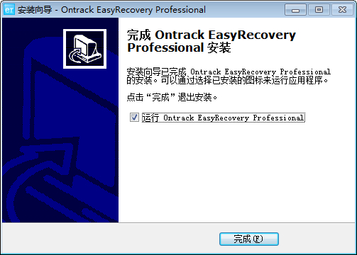 7.等待安裝完成,如要完成安裝后運(yùn)行EasyRecovery,可勾選“運(yùn)行Ontrack EasyRecovery Professional”,點(diǎn)擊“完成”退出安裝..