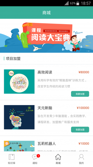 您可以在商城加盟天地人和教育產(chǎn)品、購買教材、繳納場地費;