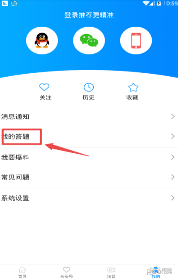 注冊登錄賬號,選擇【我的】按鈕,點(diǎn)擊【我的答題】